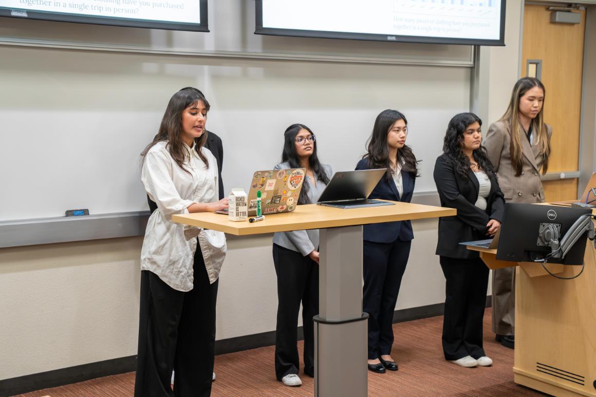 The following pictures show the SCU teams presenting to Amelia and receiving her reactions and feedback. What a wonderful opportunity for a senior in college to work with and gain insights from a seasoned retail executive. At the Retail Management Institute, we believe these types of experiences turbocharge our students' knowledge base, skill set, and confidence.