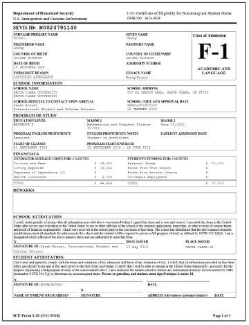 - Non F-1 Employment Authorization Documents such as those issued for H-4 or L-1