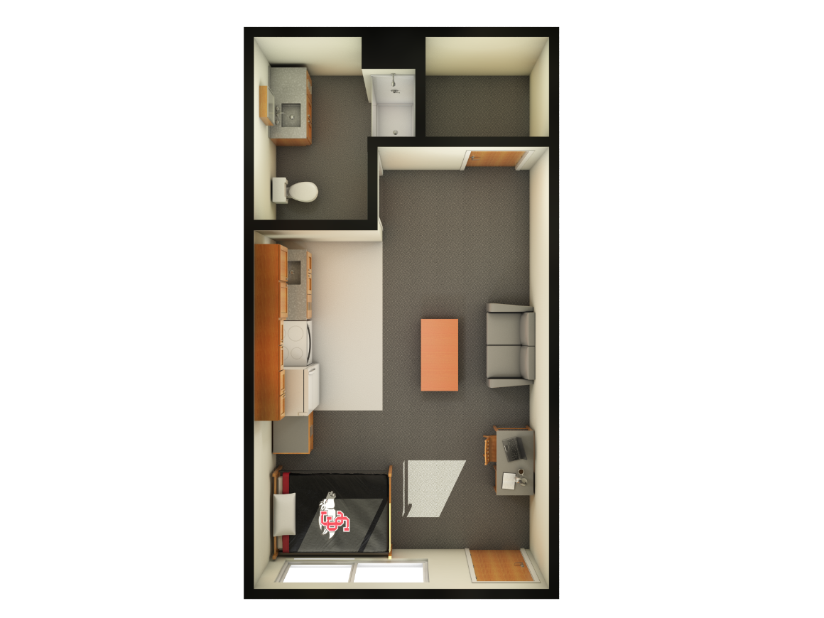 St. Clare is a gated community conveniently located two blocks from both Lucas Hall and Daly Science. The complex offers 59 single furnished studios in a two-story building with exterior corridors. Each studio offers approximately 275 square feet of living space with a kitchenette and private bathroom. All utilities, cable television and access to the university's wireless data connection are included and are billed per academic term. Each studio is assigned to an individual student.